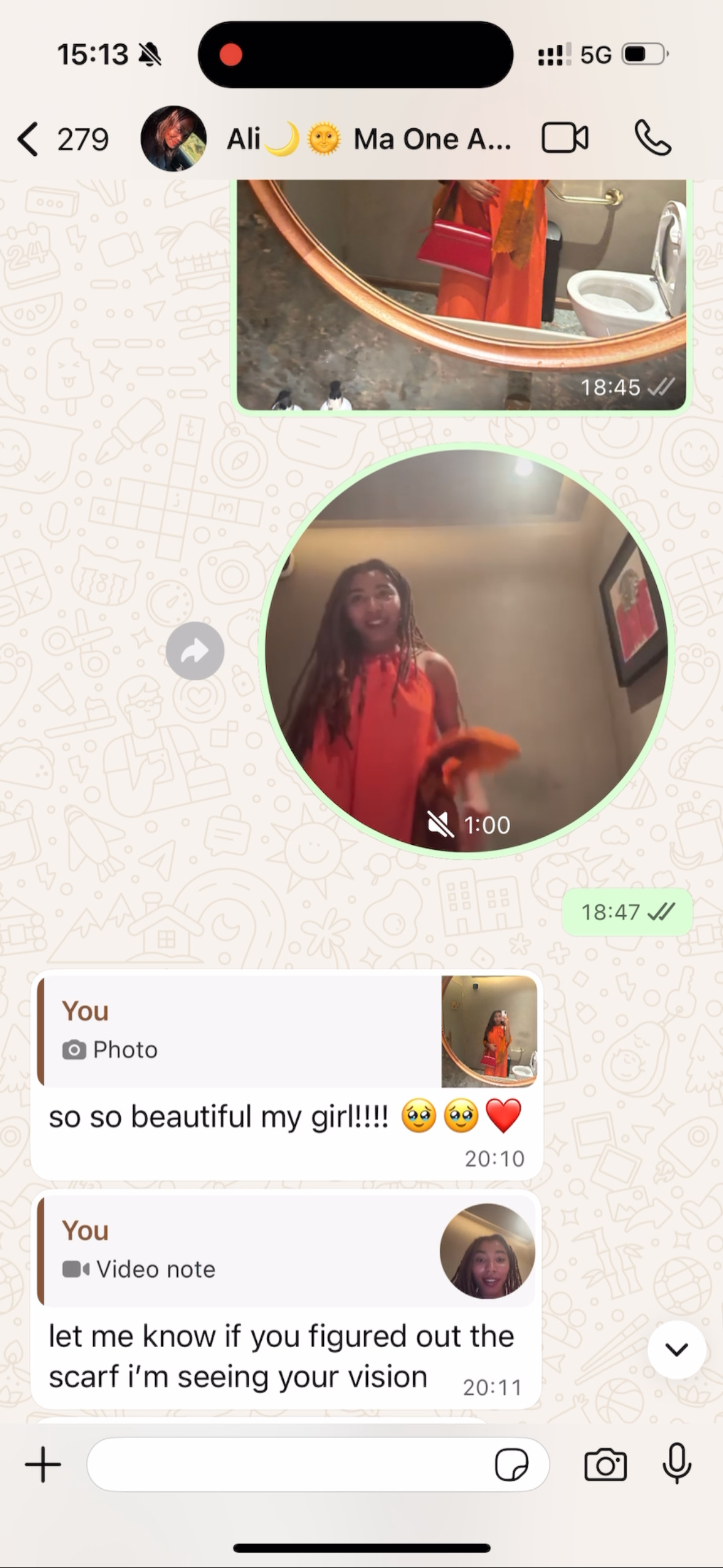 Enter, WhatsApp video note or what I call, my “beautiful bridging bubbles”. WhatsApp’s video notes are the third addition in the three modes of capturing and sending videos and images internally on the platform. While recording and sending content has existed for years on the app, the introduction of the video note provided a new format of communication for users like myself who thoroughly utilise the quick and user friendly voice note function to transmit messages that demonstrate my tone, enthusiasm, mood and limit the technicality and slowness that texting can provide for a curious, quick moving, extroverted neurodivergent brain. Voice notes permit authentic communication that ensures that the recipient of the message accurately understands the sentiment behind my message as well as receives any changes in my thought process in a conversation as they develop.